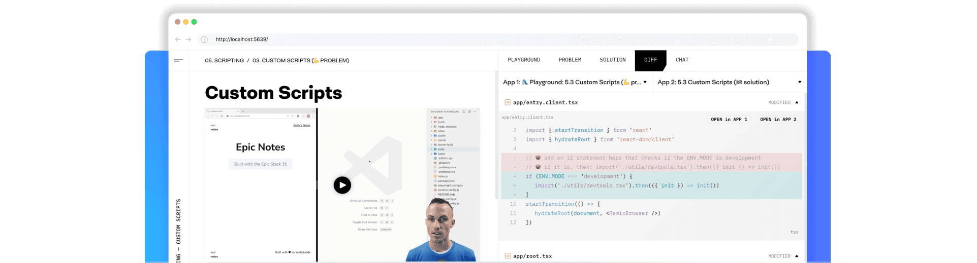 Epic Web workshops provide you with an efficient in-depth strategy for getting hands on coding experience using the best patterns, practices, and tools for the job.