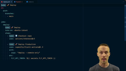 5:18 Then we updated our deploy.yml so that we would only deploy to production if we're on the main branch and we added a staging step that deploys if we're on the dev branch, and then we also read the app name from the fly.toml so we could use that as part of the deploy command of our staging step.