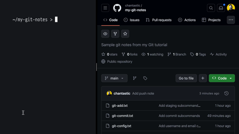 00:19 We'll make a new note for git pull, txt, give the heading git pull. Commit as add pull note, which gives us commit that only exists on our remote repository. Now let's run both commands of git pull, our fetch and merge. First, let's run git fetch.