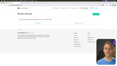 00:00 Well done on this one. You have now learned all the primitive types, and it's awesome. There are a lot of really cool things in JavaScript, and it's fun. Let's get a random dad joke in here. How was the snow globe feeling after the storm?