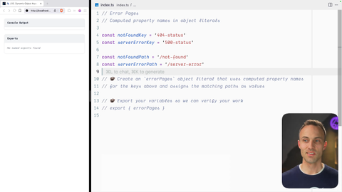 01:02 Anyway, you got the right idea. So, you can do any expression in here. You could call a function in here as well and whatever that expression evaluates to, as long as it's a something that's too stringable, it can be set as a property in here. The other fun, like, little preview of the future is that you can also do symbol, symbol dot four, you know, unauthorized or whatever. You can, put symbols as property names as well and you'll, do that when we get into more advanced sort of things.