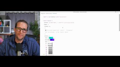 00:00 Okay this one is really quick once again so in my tailwind config in the theme colors before the colors I mean it could go after but I'll go before here we're going to bring the three missing