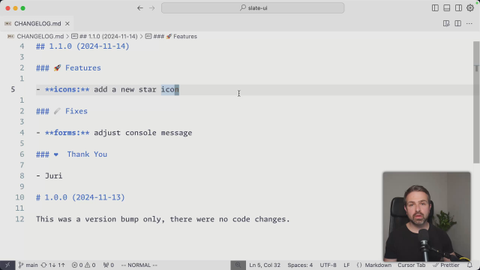 02:55 and set it to true. And so if I now release again, we can see how also the docs changes are being shown in our changelog.