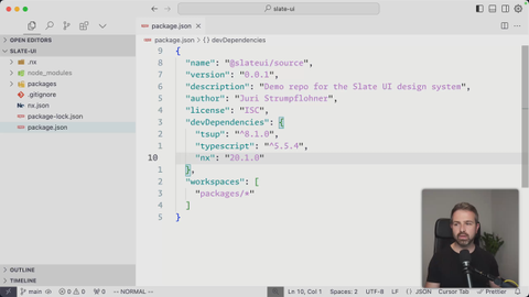 00:49 which we care in this specific course here in this repo example, we have the @nx/js plugin that has been implemented by the NX core team. And so we can install that to get JavaScript versioning. Now this is just an npm package, so we could just go ahead and add it to our root package json.