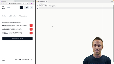 00:00 Connection management. So we're going to just do a couple of things here to make managing user connections a little bit better. So First we're going to manage What happens if a user logs in with github and we see that the profile email? Matches the email address of a user we already have in our database