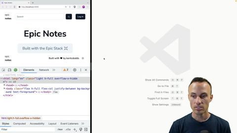 04:27 it kind of forces us into putting the loading of that cookie in our loader, which runs on the server. And so we get a server render of our theme, which is nice. So you'll notice with this approach, I can hit refresh and it server renders as dark mode. If I take a look at this, we'll find, yeah, it's right there, server rendered as dark mode, which is nice.
