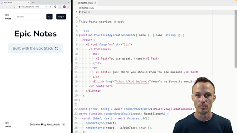 02:51 because it's really just like, that's it. You do this and write React code. And so there's not a lot that we're going to be talking about. As far as authoring the emails, I'm more interested in teaching you how to send the emails and how to mock things so that you don't actually end up sending real emails during development.