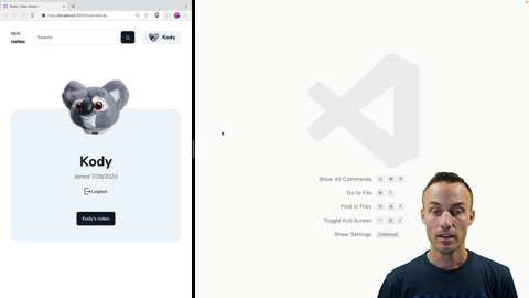 00:00 Your job in this exercise is to make this logout button work. So right now it's just a form that doesn't do anything. You need to change it to a form that posts to slash logout because we want to do a post for this type of a mutation, not a get.