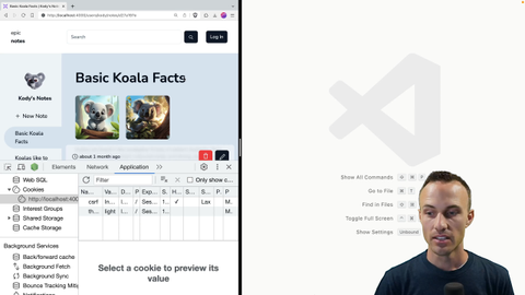02:27 So now the next trick is to, let's go back to our application right here so we can see that cookie. Next trick is to read that cookie so we can display something useful. So let's go to our root. That's where we're gonna read it. So let's get the cookie header. Cookie is request headers, get cookie.