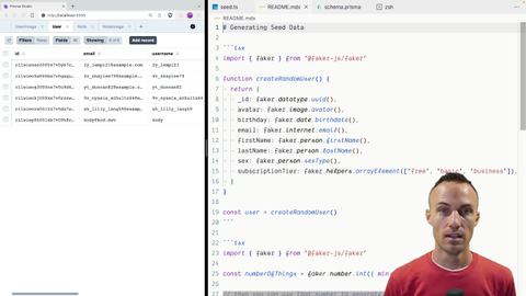 00:00 I don't know about you, but I don't want to have to create every single user that I want in my database, every single hard code, all of that data. That just doesn't sound fun to me at all. And so you'd end up with a seed file that was enormous. And what if you wanted to do some performance testing?