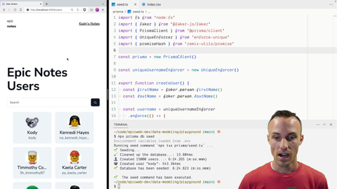00:18 What I did was we're projecting ourselves out into the future a little bit. You can feel free to do this as well if you like. Just keep in mind, it takes a little while to seed the database with this much data. But right here, we've got 15,000 users that we're going to be inserting into the database.