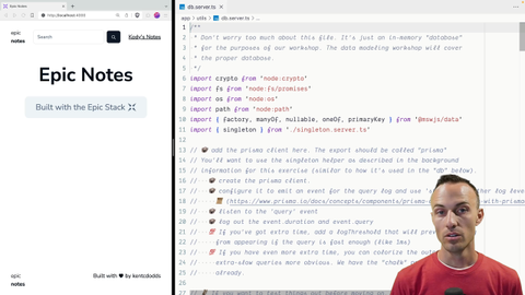 00:37 and you can very quickly iterate on different solutions. This is really awesome, but it also means that our module here is gonna be evaluated every time we make a server change, which means that the connection created by creating this Prisma Client will be made every time. So you change a file, it makes a new connection.