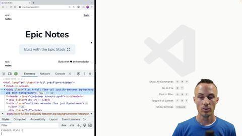 00:19 to our root error boundary, and so that's fine. But we could do better, right? Because we can still render the header and the footer, everything else still works. If the user's logged in, they should be able to see their avatar and all that stuff, like when we add login capabilities. So it would be nice to have that.