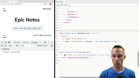 00:40 but the idea, the problem is that yes, we are rendering the HTML, but if there's an error in the loader, then the component won't get rendered. That applies to all the routes, including the root route. So the component's not getting rendered. This is getting rendered instead of the component. That's how it works. And you could imagine why,