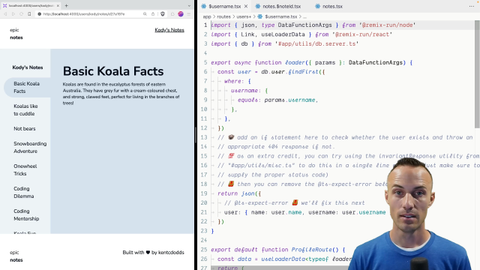01:34 and then the browser can behave appropriately for this particular situation. As cool as it is that we can throw these responses, and Remix will handle those and take those response status codes and everything. Eventually, we can even pass data to