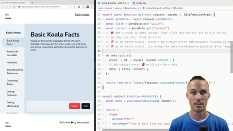 00:00 To start, let's get rid of this comment right here. We're basically saying TypeScript, I know you're trying to let me know how terrible my life is, but I'm going to shut you up. No, we don't want to do that. TypeScript is only there to be helpful. What it's saying is, this update accepts data for the title and content. The title and content could be a couple of