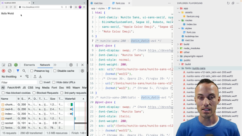 00:18 It includes references to slash fonts, which we'll find in the public directory slash fonts, and then our font name, and then all of the fonts that are in here. So what we're going to do is we need to link this font.css to our application so that we can then use the styles that are applied to get