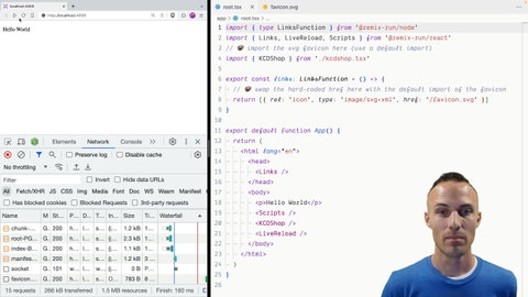 00:48 because it has it in the cache. So let's continue and make it so that we can get our orange favicon like we want. Coming over here to our root. So now let's import the favicon asset URL from assets