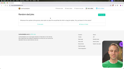 00:00 Good job on this exercise. Let's get a dad joke. Whenever the cashier at the grocery store asks my dad if he would like the milk in a bag, he replies, no. Just leave it in the carton. Oh, that's good.