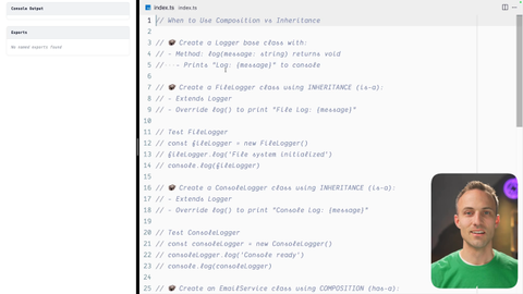00:00 Alright. In this exercise, we're going to explore kind of the composition versus inheritance with, classes and kind of comparing has a relationships with is a relationship. So a thing has something or a thing is something. So jump into this exercise and we'll see you when you're done.