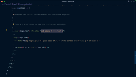 06:42 control through the placement of each logo tile with a simple coordinate system we're using javascript and typescript to empower us to generate some simple tailwind css classes and i think that's super powerful and super useful