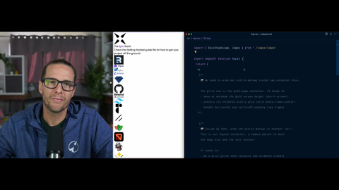 00:00 All right let's dive in. So we have this long comment here telling us about the two wrapping div and I will place these divs after the comments so here and just as a reminder the first div is the overall container and then the layout container that contains both the main sections of our design.