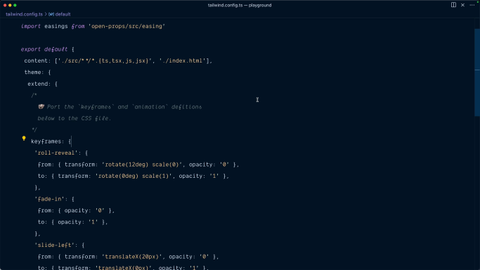 00:18 link with the Tailwind CSS default theme with all the CSS variables you'll see that the keyframe animations are defined as just regular keyframes inside this add theme block. So we're going to do that here and hopefully Copilot is going to help us. So at keyframes we'll start with keyframes