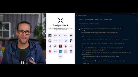 00:00 Okay, this is the last video where I have the code and the design side by side. From the next video, because we're working on the larger screen sizes, we're going to have one screen for the code and one screen for the UI and switch back and forth. So the second internal layout container is where I want to switch to a two-column