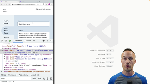 00:19 associated is we'll have, well let's hit enter, there we go, we have aria-invalid is true and aria-describedby is the title error. That's going to be the ID of our errors. And the effect that's going to have on our screen reader is it will say that the title