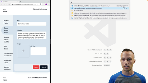 08:10 We'll add that. And then, cute, koala, and then submit. And it's all still working. We can still edit as well. So, koala, soccer, and submit. Let's just make sure that the alt text is getting set properly as well. There it is right there.