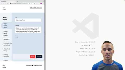 00:36 So let's use this image chooser right here, image chooser. We're going to pass the notes first image as image props. So this is for when you're editing a note that already has an image. So we've got the image prop and that'll be data.note.images. We'll just do the first one.