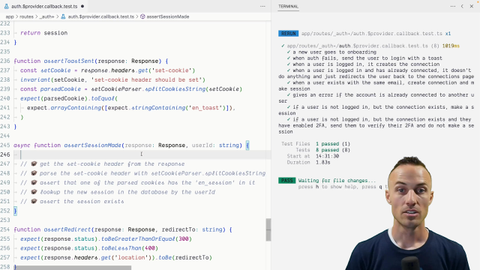 00:51 But normally, you want to use expect because you have a little bit nicer utilities here. So, we're actually going to do something similar to this, where we're going to get the parsed cookie. Let's grab that piece, too. And we're going to make sure that the en session is set. So, that's in our session.server.