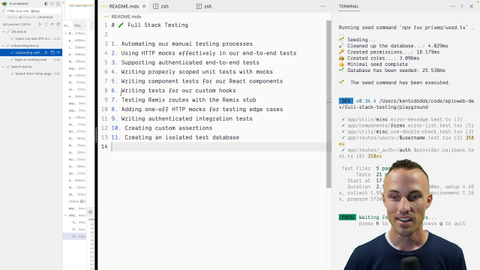 00:00 Hey, you remember all this stuff? You just did all that. Awesome job. Look at this amazing set of tests that you put together, both in our UI for the Playwright stuff, as well as lower level tests that we put together. You've learned a ton of stuff, and you need to put this to practice, like pronto.